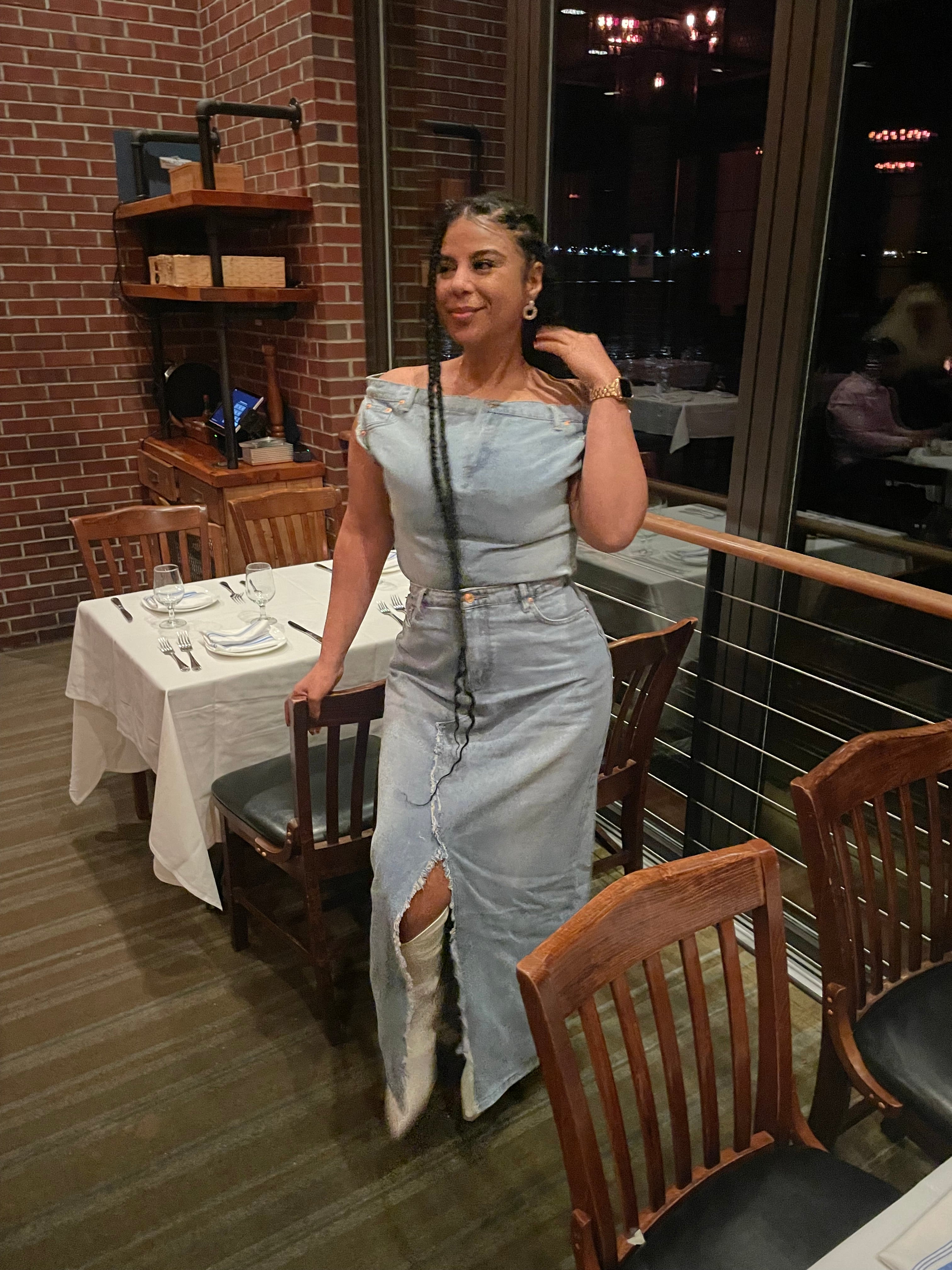 High-Waist Asymmetrical Slit Denim Maxi Mermaid Skirt