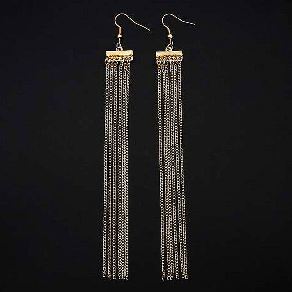- These long fringe earrings feature a stylish fish hook design complemented by a chunky chain, creating a bold statement piece.